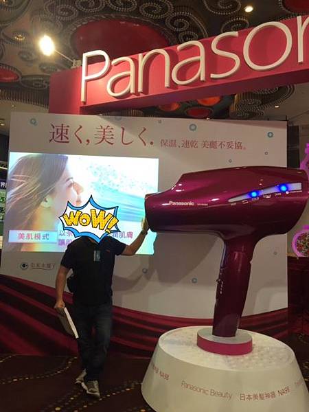 想不到映入眼簾的就是超大版的NA98 吹風機模型 而且它真的有風吹出來耶~哈哈 太用心了